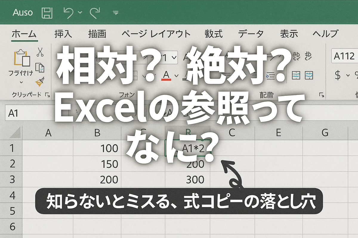 たとえばA1セルに =B1 と入力して、それをA2にコピーすると、自動的に =B2 に変わります。「A1からB1を見ていた」という位置関係をそのままコピーしてくれるイメージです。
